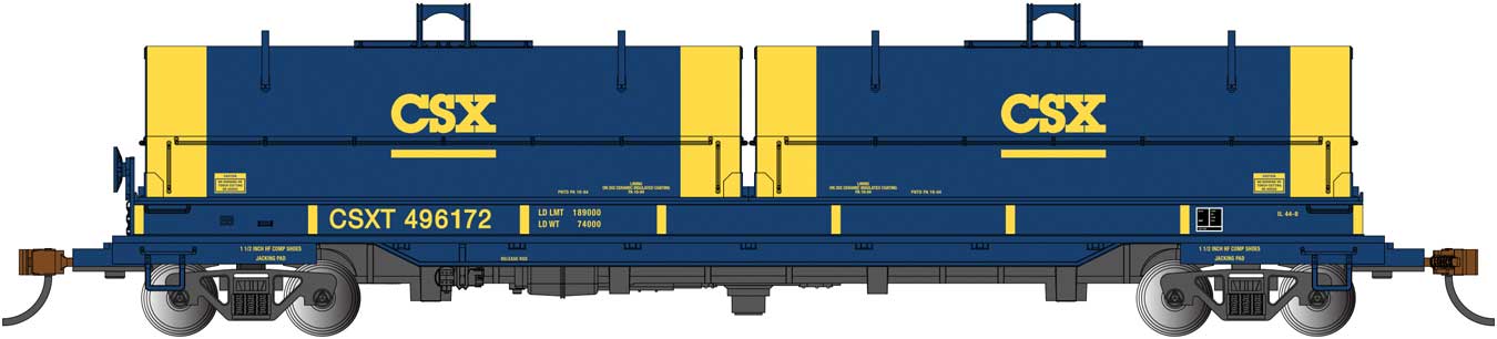 - Bachmann 55′ Coil Car with Round Hoods and Load – Ready to Run CSX #496172 (blue, yellow hood ends, yellow conspicuity marks)