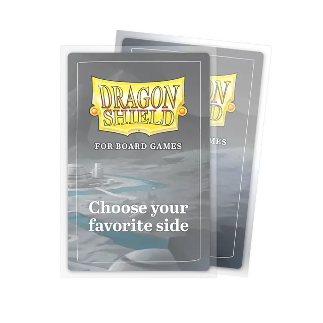 Our combination of both a Clear and a Non-Glare side on the board game sleeves ensures a delightfully smooth shuffle, while letting you decide which side to use for the front or back of the card. Our Dragon Shield board game sleeves in Extra Large size: