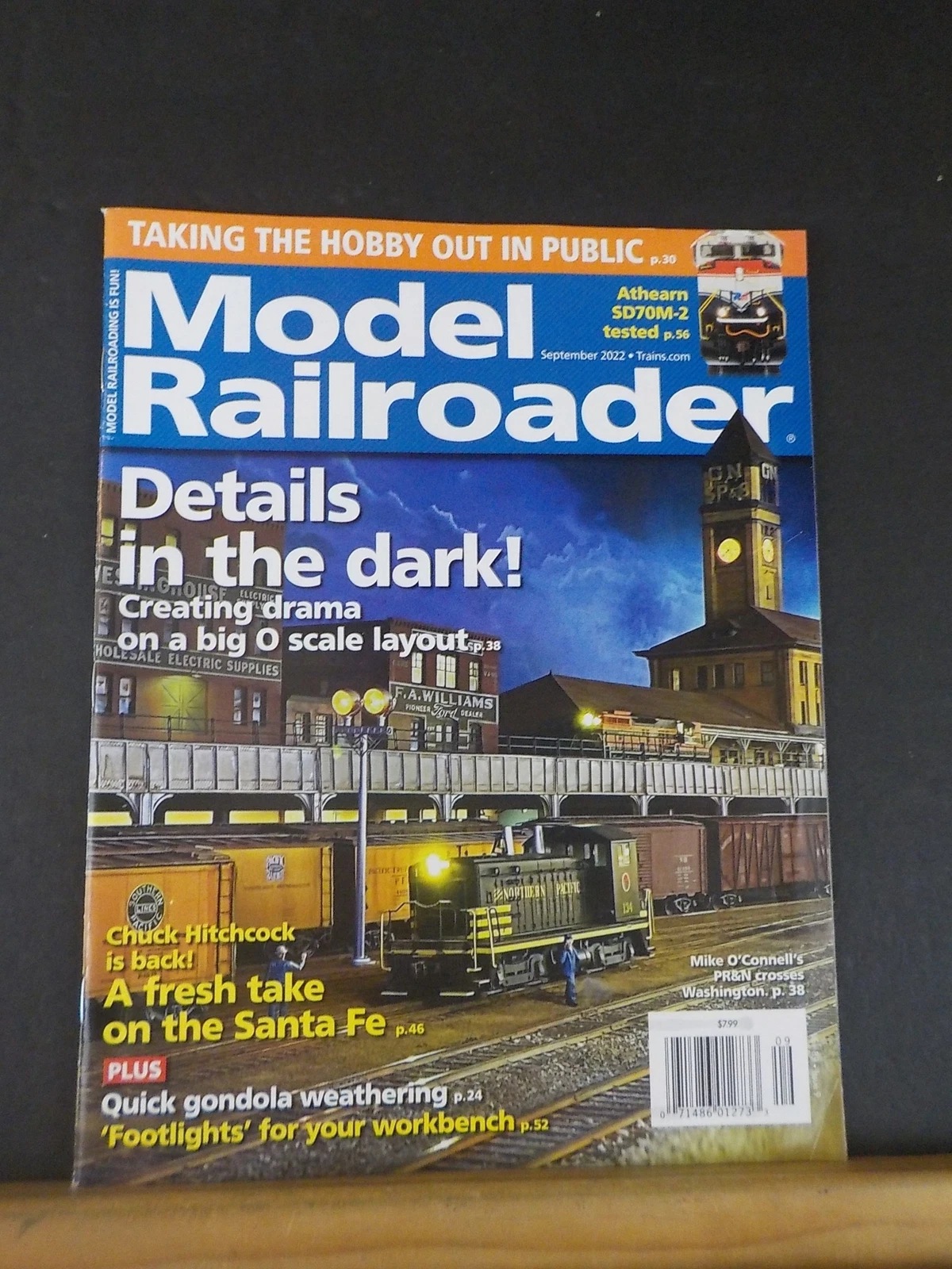 Model Railroader “Details in the Dark” focuses on a Santa Fe model railroad layout, offering tips on detailing and adding realism, possibly including lighting or weathering techniques for modeling night scenes. The title suggests a focus on intricate details that become apparent in low-light or nighttime modeling.ย