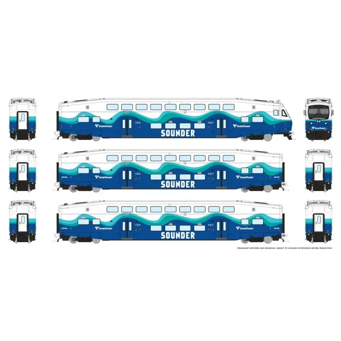 Rapido HO CEM Bi-Level Commuter Car: Sounder: Set #1 (Cab: 321 Coaches: 422, 425) Pre-Order