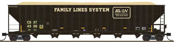 Trainworx Inc Greenville 7000-Cubic Foot Wood Chip Hopper – Ready to Run, Family Lines CSXT #433623 (Patched, black logo, yellow, conspicuity stripes), (Pre-Order)