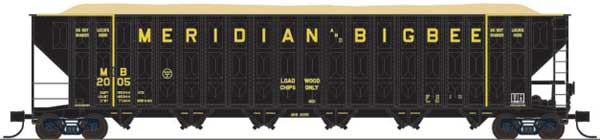 Trainworx Inc Greenville 7000-Cubic Foot Wood Chip Hopper – Ready to Run, Meridian & Bigbee #2014 (black, yellow), (Pre-Order)