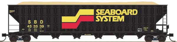 Trainworx Inc Greenville 7000-Cubic Foot Wood Chip Hopper – Ready to Run, Seaboard System #433595 (black, white, yellow, red), (Pre-Order)