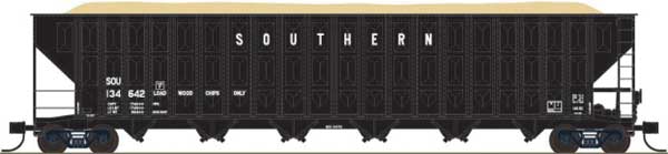 The new Trainworx Greenville 7000-Cubic Foot Wood Chip Hopper is based on prototypes that first hit the rails in the early 1970s. The huge cars are designed to haul wood chips used as feedstock for making paper mills. These unique cars have been owned by several railroads and many are still in service, so modelers of paper mills from the 1970s to the present love them. The cars feature detailed, injection-molded bodies with the unique embossed side body panels, appropriate trucks, metal wheels and magnetic knuckle couplers. The Greenville 7000-Cubic Foot Wood Chip Hopper is one of manyย Trainworx N Scale freight cars.